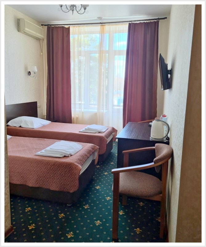 НедостаткиЗавтраки вкусные, но однотипные . При брони сказали столовая на территории, да она есть , но по факту в неё не попасть, она только для тренировочных сборов. Номера чистые, при длительном проживании бельё дополнительное меняют платно 🤷♀️ хотя при бронировании и за доп.бельё платили.
