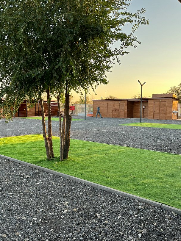 Автокемпинг Ультра Кемпинг находится в Волгоградской области, в самом центре города Волжский. Это идеальное место для тех, кто любит активный отдых на природе, но не хочет отказываться от комфорта. Кемпинг расположен на территории парка Ультра 100 — здесь приятно гулять и рассматривать необычные инсталляции. В пешей доступности есть два живописных озера, идеальные для прогулок и отдыха у воды. Поблизости расположены продуктовые магазины, несколько ресторанов и кафе, заведения быстрого питания.