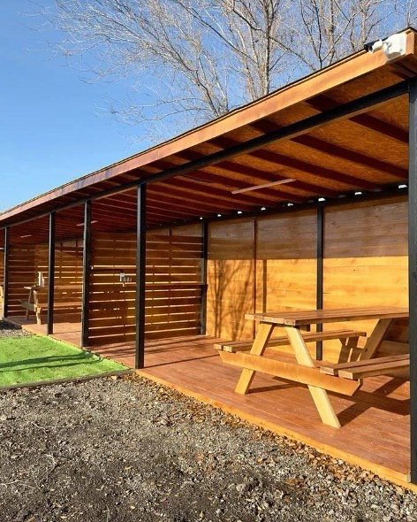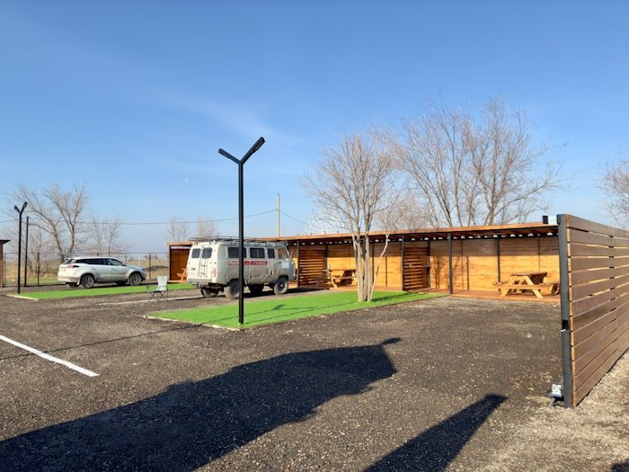 Ваше пребывание в кемпинге будет максимально комфортным. На территории подготовлены просторные парковочные места для автодомов и прицепов. Освежиться после долгой дороги можно в уютных душевых кабинах. Зарядить свои гаджеты или автодом не составит труда, т.к. на территории имеются розетки, а электричество входит в стоимость аренды места. Отдохнуть и пообедать с комфортом можно в уютной беседке. Также доступна аренда мангала и принадлежностей для барбекю.