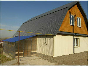 Девять спален с двухспальными кроватями. Душ и туалет в каждой спальне. Сауна с бассейном 3,5 на 2,5 метра и глубиной 2 метра. Бильярд в камином зале. Кухня оборудованная микроволновкой, газовой плитой с духовкой и посудой на 20 человек. Столовая на 20 человек. Кальянный зал-мансарда. Остекленная летняя веранда на 30 человек. Парковка на пять автомашин. Барбекю и мангал.
