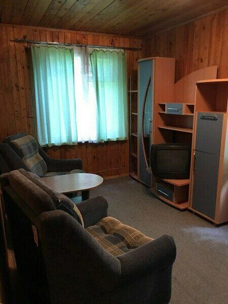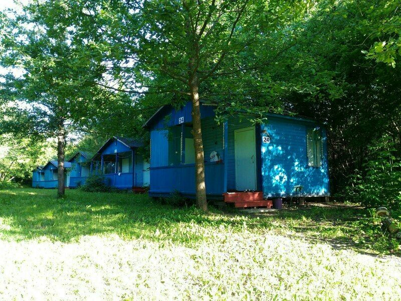 В домике: кровати, тумбочка, стол, стулья. Холодильник, умывальник, туалет, посуда, электрический чайник. Душ на территории и в некоторых домах.