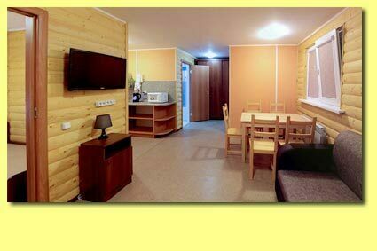 В коттедже душевая кабина, туалет, умывальник, спутниковое ТВ, холодильник, СВЧ-печь, центральное отопление, подогреваемые полы.