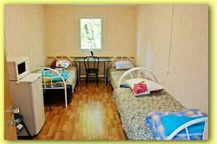 3 спальных места, телевизор, холодильник, шкаф, тумбочка, стол, удобства на блок из 5 номеров.