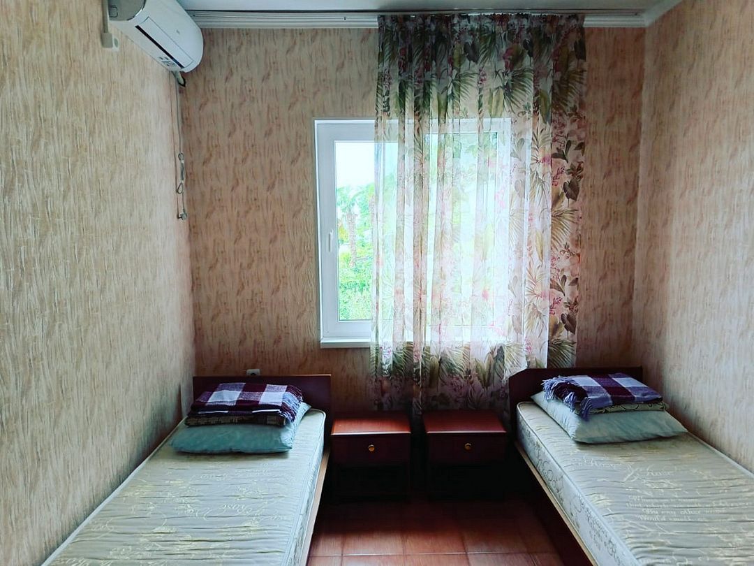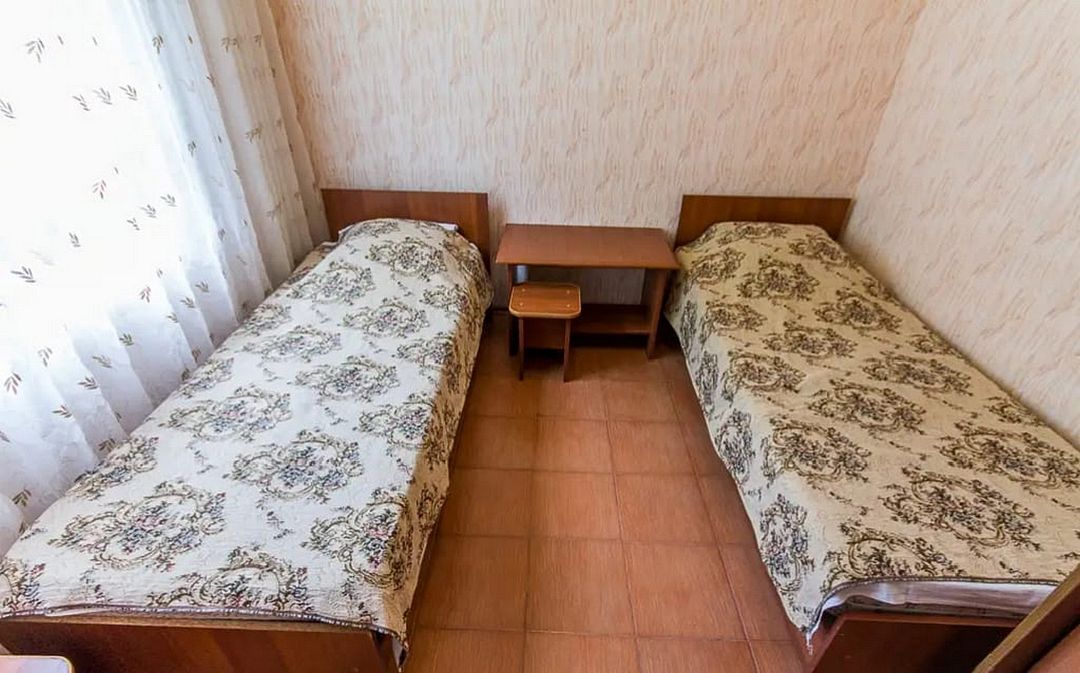 В номере имеются две односпальные кровати, телевизор, кондиционер, шкаф, вешалка, журнальный столик и стулья. Общие удобства включают ванную комнату, душ и туалет.