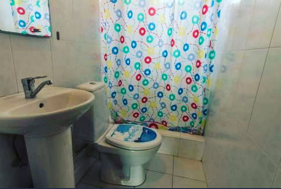 В номере имеются четыре односпальные кровати, телевизор, кондиционер, шкаф, вешалка, журнальный столик и стулья. Общая ванная комната включает душ, туалет и раковину.