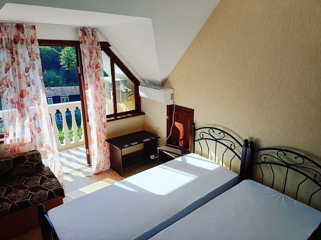 Двухместный номер класса «эконом» площадью шестнадцать квадратных метров с видом на горы и море. Подходит для размещения двоих человек и располагает спальней с уютным интерьером.