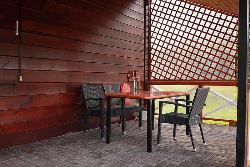 У коттеджа своя терраса и мангальная зона для приготовления шашлыков и стейков.