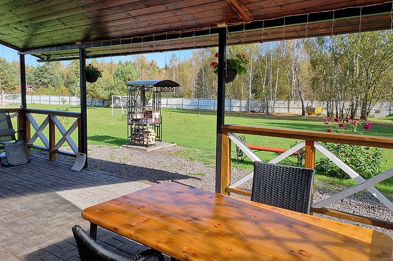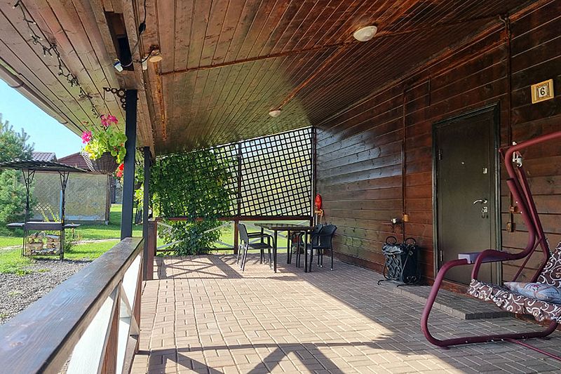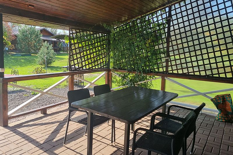 У коттеджа своя просторная терраса и мангальная зона для приготовления шашлыков. Принадлежности для мангала все есть.