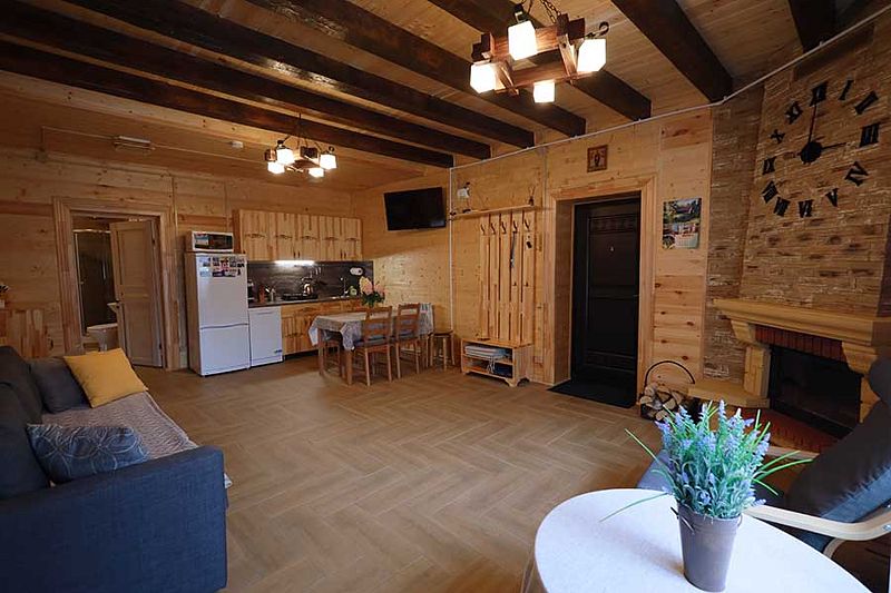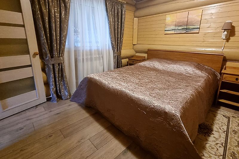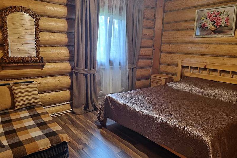 4 комнаты. 2 спальни, 2 зала, камин на дровах, сауна на дровах. 2 кухни, 2-ве ванных комнаты, посудомойка, отопление, тв, интернет и т.д.