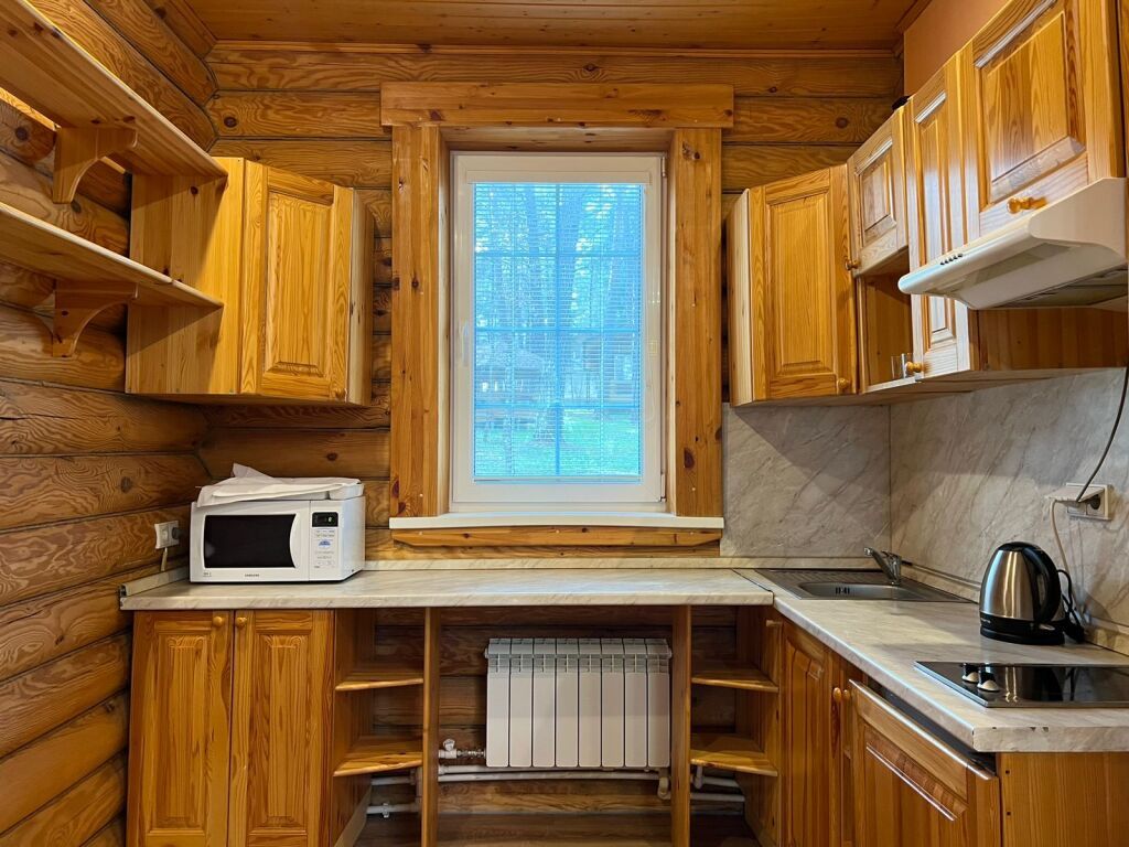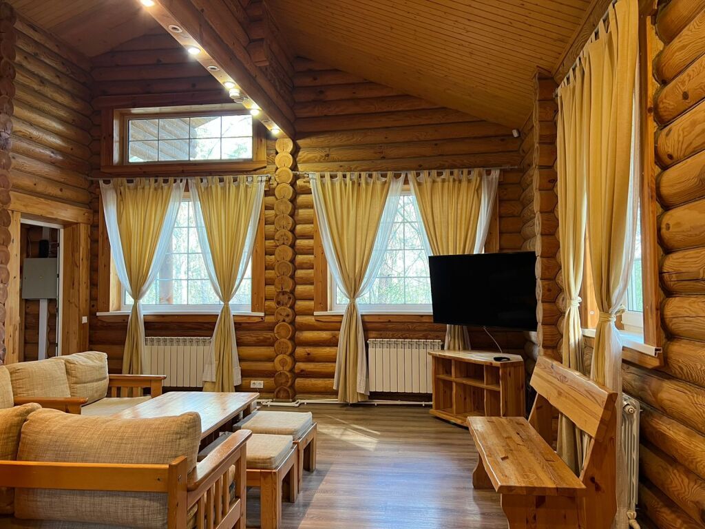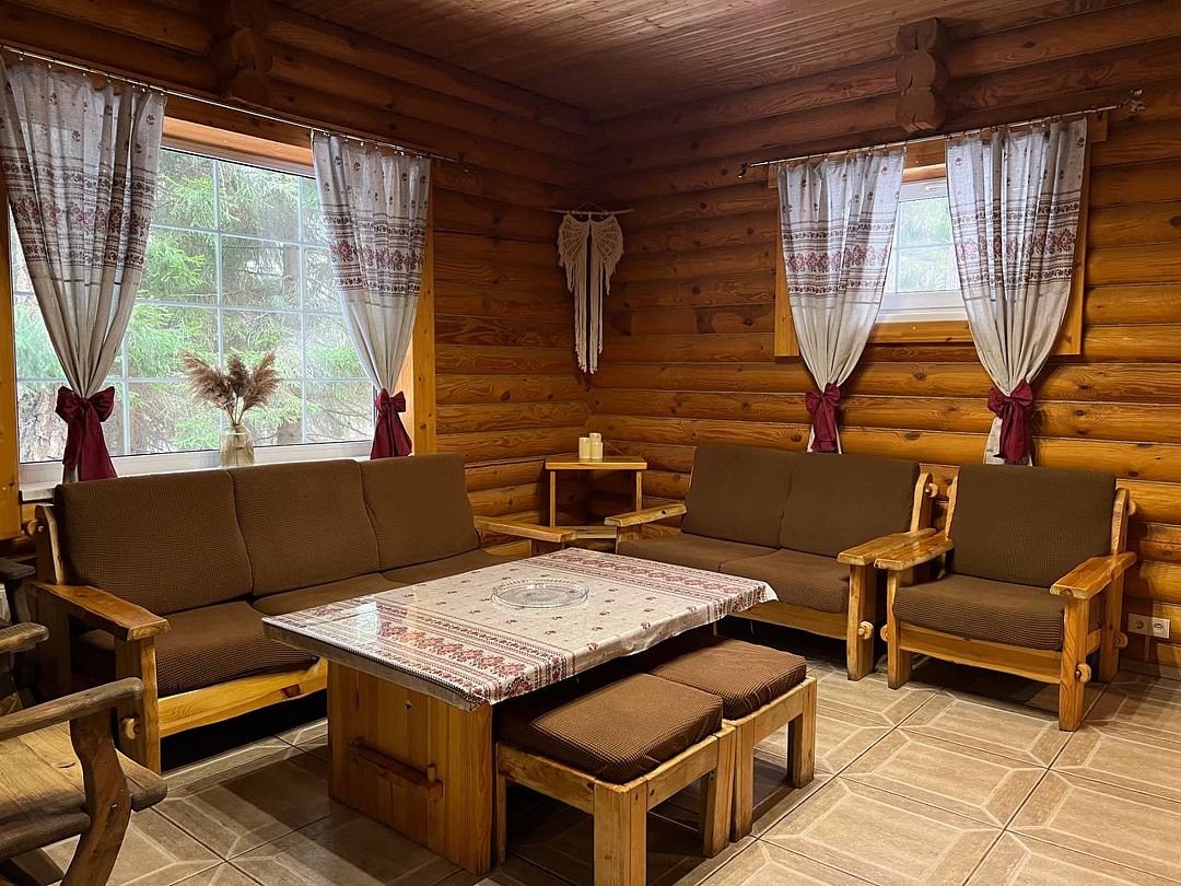 Русская баня в сосновом лесу. Растопка дровами — приятный треск бревен, аромат и завораживающая игра пламени с эффектом камина помогут расслабить не только тело ,но и разум. Уютная комната отдыха в Русском стиле с небольшой кухонной зоной для полного комфорта гостей.