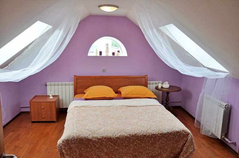 - На 2-м этаже VIP-номер просторная и уютная спальня, оборудованная кухня-студия, ванная комната, ТV, DVD