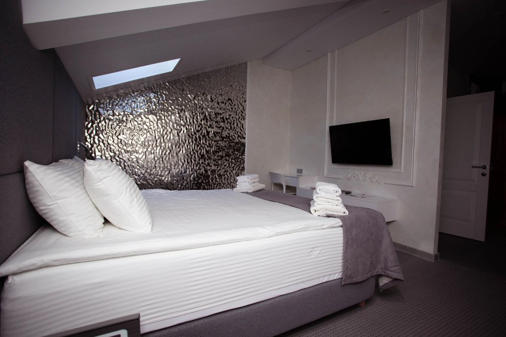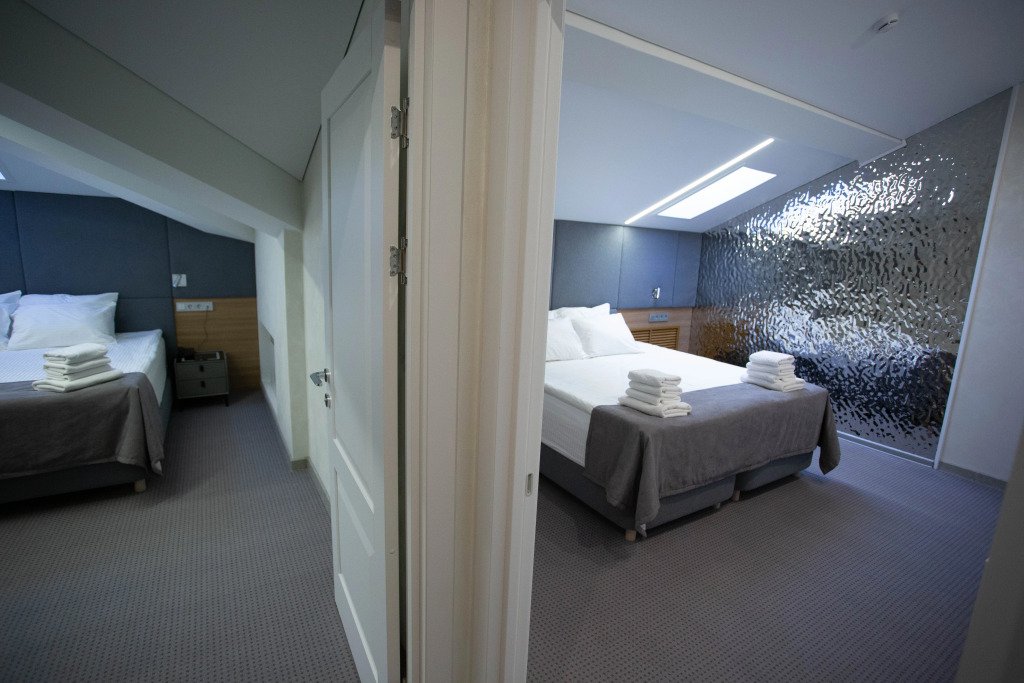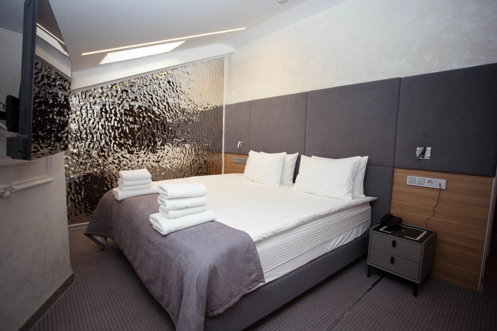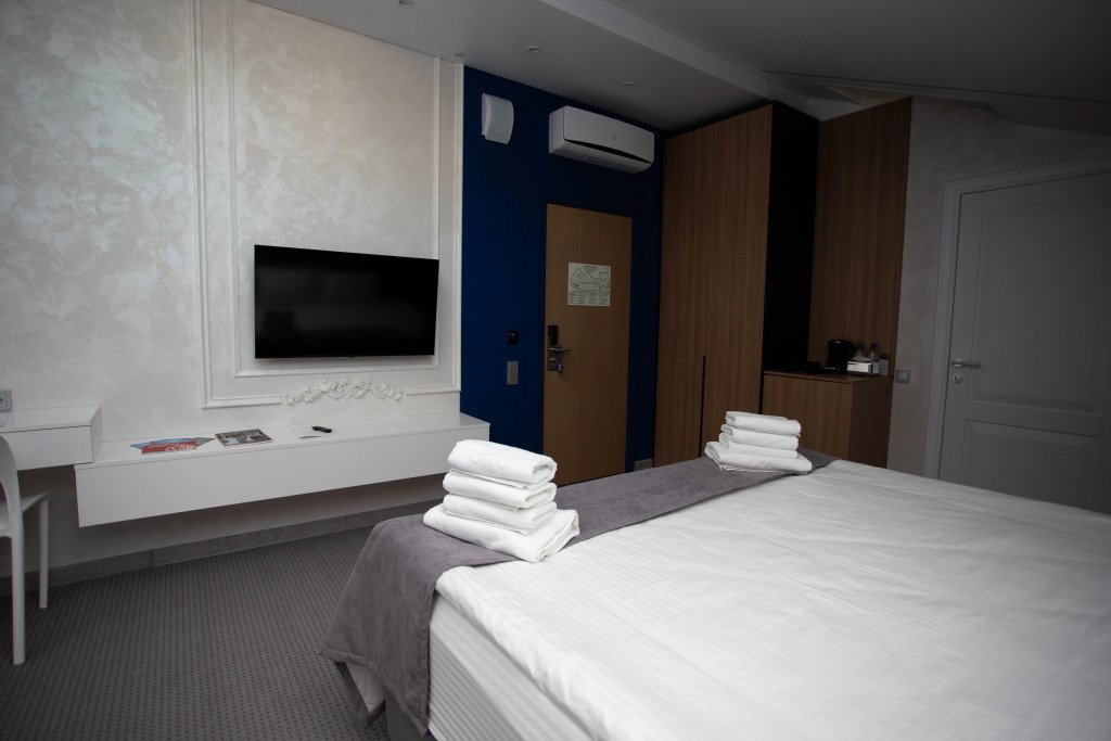 В номерах для удобства гостей есть кровати с ортопедическими матрасами и постельным бельём. В каждом номере есть Смарт-ТВ и бесплатный Wi-Fi.