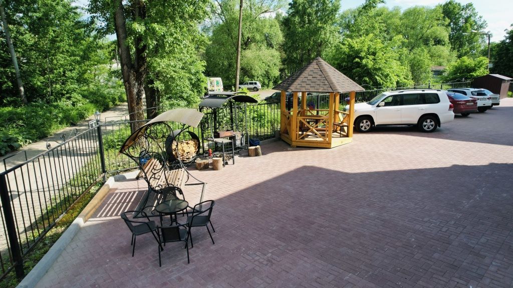 Во внутреннем дворе расположен крытый мангал, где вы сможете приготовить различные блюда по желанию. И 2 уютные беседки с освещением на 6 человек. Аренда зоны барбекю - платная услуга, за информацией обращайтесь к дежурному администратору.