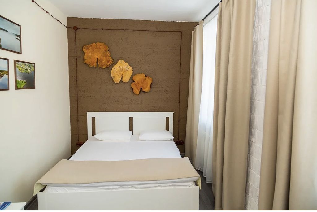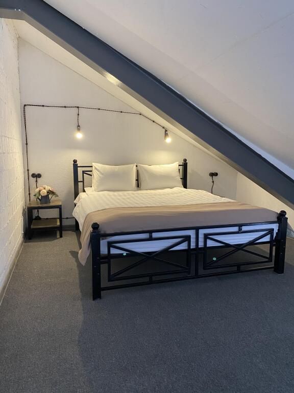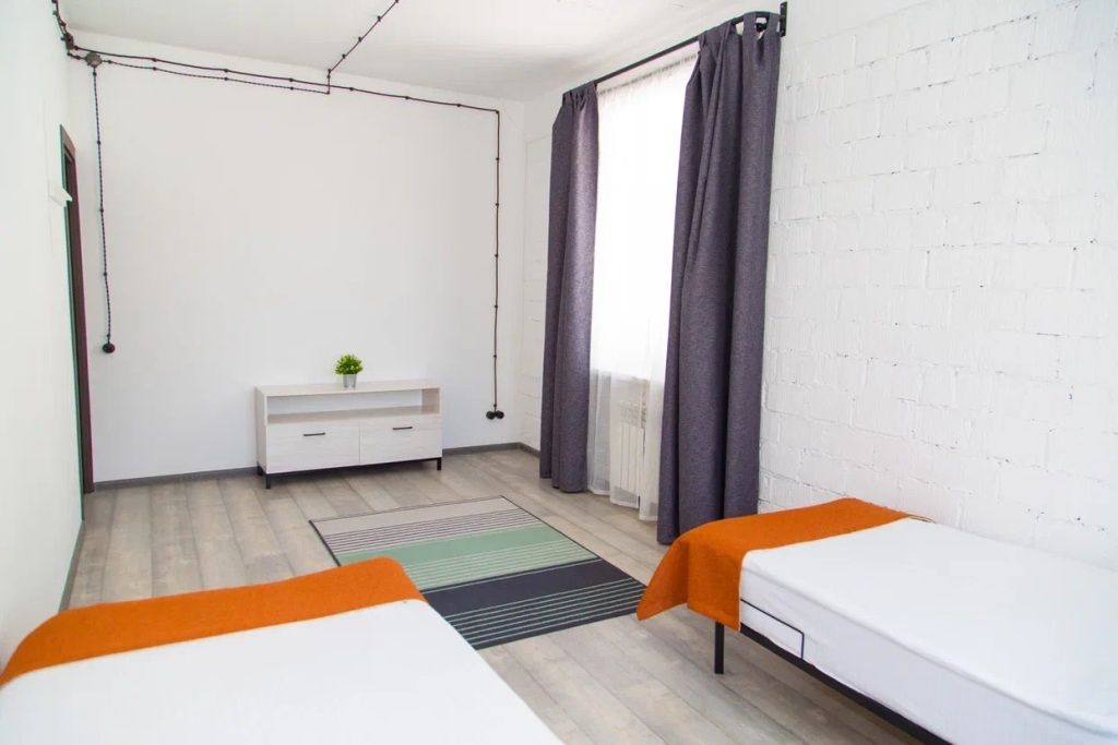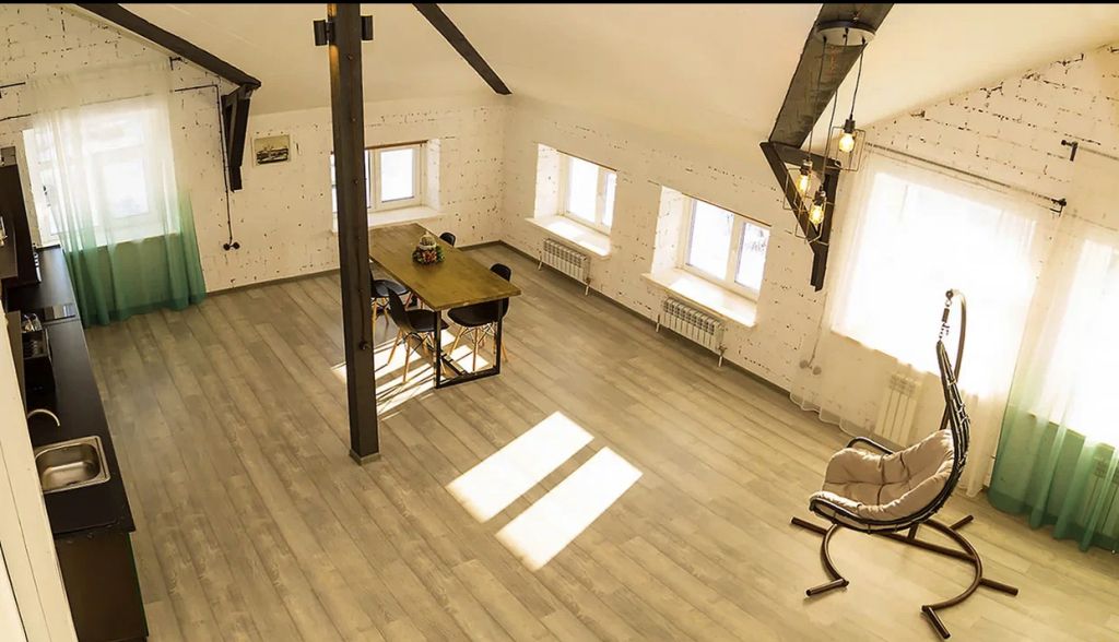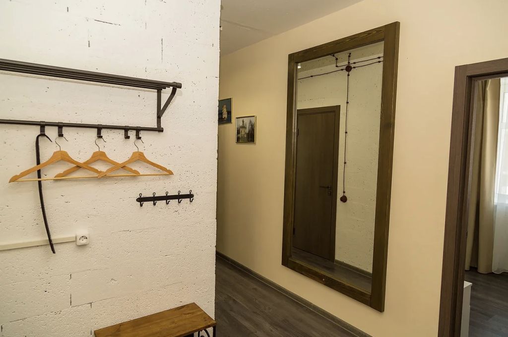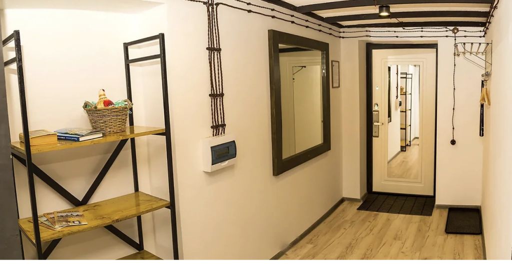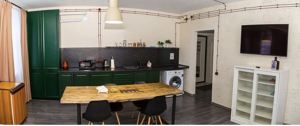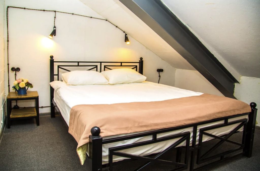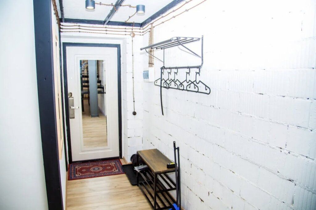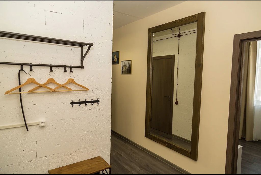 Просторные двухуровневые апартаменты. На втором этаже - двуспальная кровать (160х200), стеллаж, прикроватные тумбы; на первом этаже - двуспальный диван и двуспальная кровать (160х200). Апартаменты так же имеют собственную кухонную зону и ванную комнату. В зоне кухни-гостиной имеется телевизор; большой обеденный стол; кухня оборудована индукционной плитой, холодильником, микроволновой печью и чайником. В апартаментах есть утюг и гладильная доска. В ванной комнате имеется фен, халаты и необходимые одноразовые гигиенические принадлежности. Постельное белье в апартаментах заправляется по количеству гостей. Полотенца так же предоставляются по 2 на гостя; есть одноразовые тапочки. В номере бесплатный wifi.Услуги и удобства