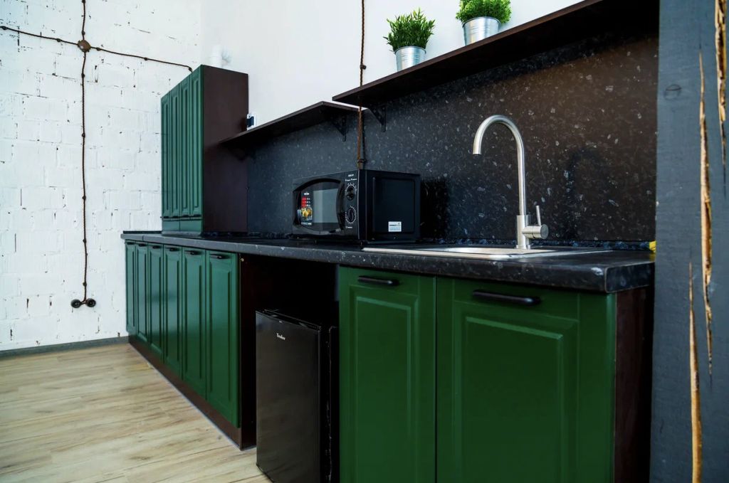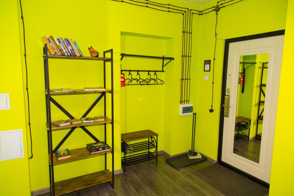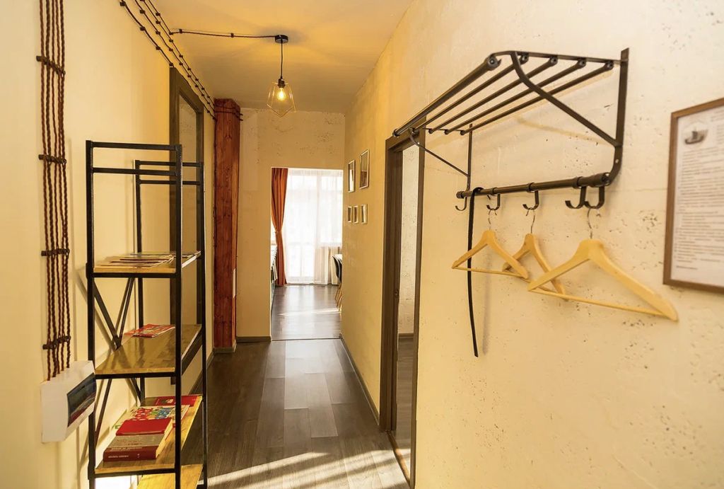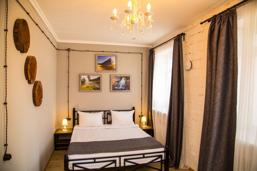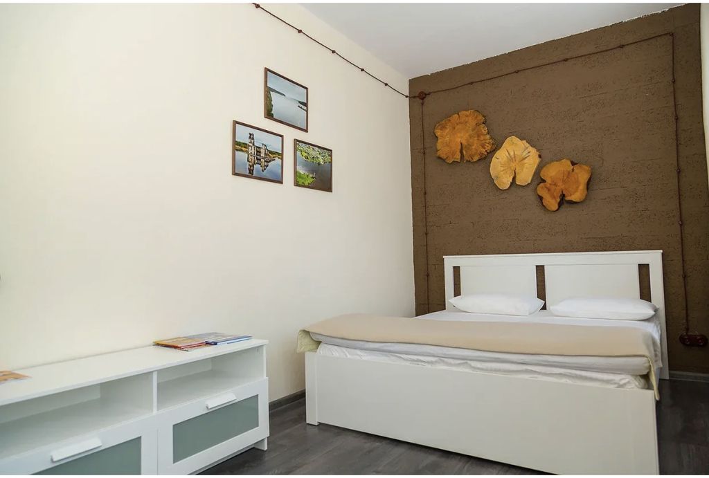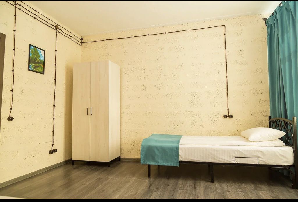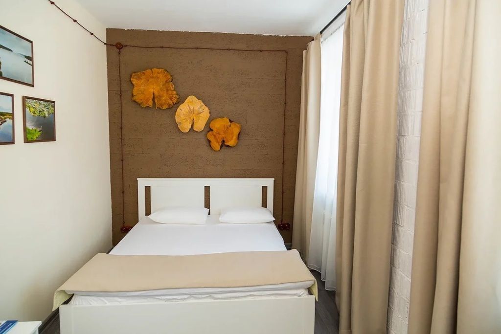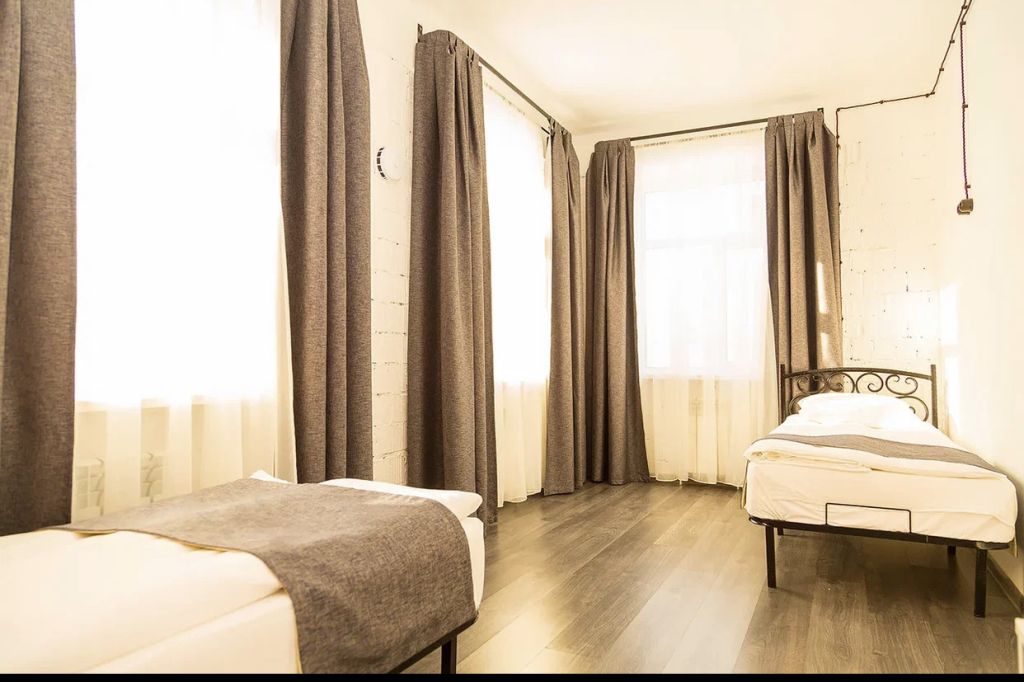 Просторные двухуровневые апартаменты. На втором этаже - двуспальная кровать (160х200), стеллаж, прикроватные тумбы; на первом этаже - двуспальный диван и двуспальная кровать (160х200). Апартаменты так же имеют собственную кухонную зону и ванную комнату. В зоне кухни-гостиной имеется телевизор; большой обеденный стол; кухня оборудована индукционной плитой, холодильником, микроволновой печью и чайником. В апартаментах есть утюг и гладильная доска. В ванной комнате имеется фен, халаты и необходимые одноразовые гигиенические принадлежности. Постельное белье в апартаментах заправляется по количеству гостей. Полотенца так же предоставляются по 2 на гостя; есть одноразовые тапочки. В номере бесплатный wifi.Услуги и удобства