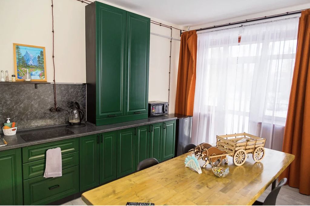 Просторные апартаменты на первом этаже без балкона. Вид из окон на реку и тихую улицу. Отлично подойдут для семьи с двумя детьми. В апартаментах две изолированные друг от друга спальни: Спальня №1 - двуспальная кровать (160Х200), Спальня №2 - 2 односпальные кровати (90х200). На кухне-гостиной имеется все необходимое: индукционная плита, стиральная машина, холодильник, микроволновая печь, чайник, посуда, большой обеденный стол на 6 человек, двуспальный диван-кровать, ТВ. Санузел совмещенный; с душевым поддоном. Мы предоставляем постельное белье, полотенца, тапочки и косметические средства по количеству гостей в брони.Услуги и удобства