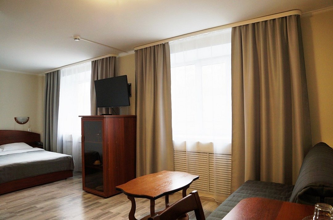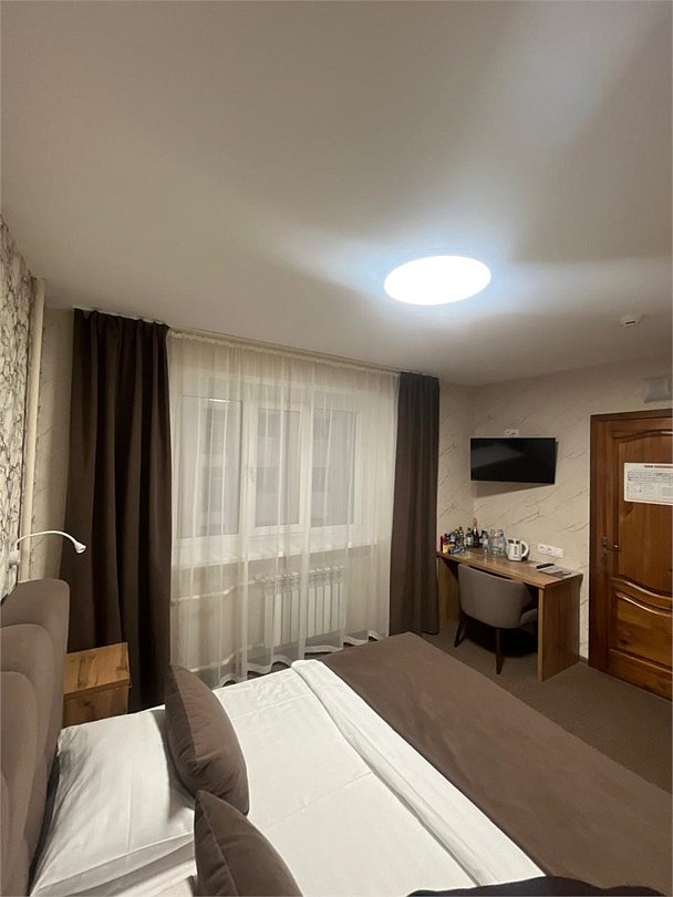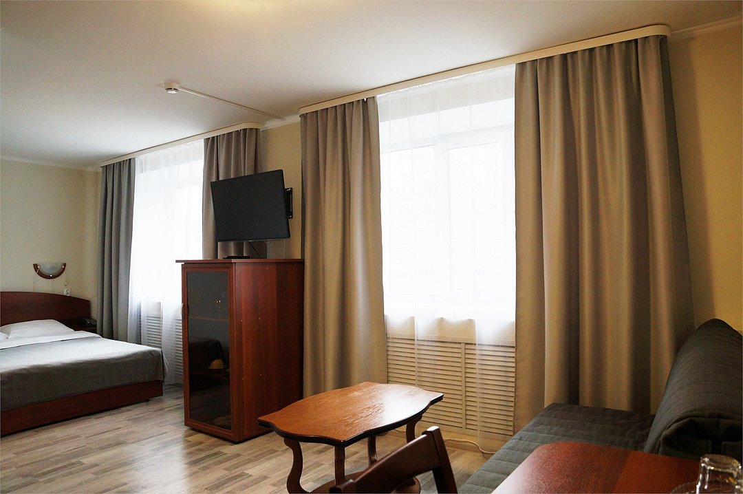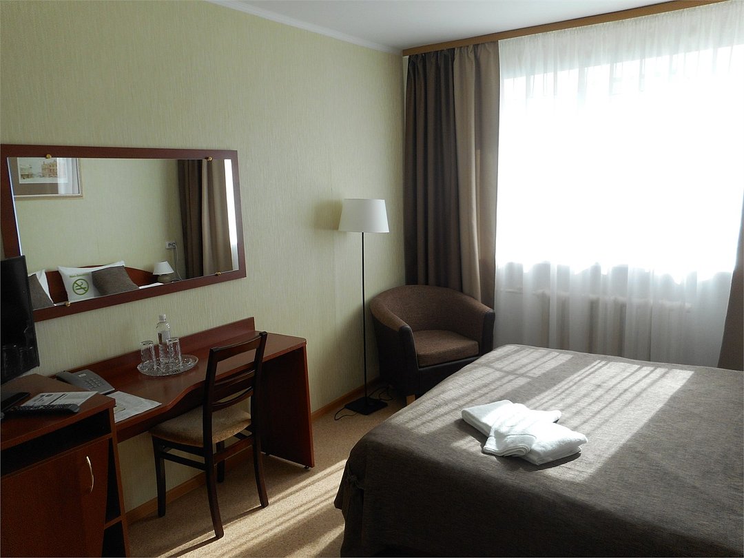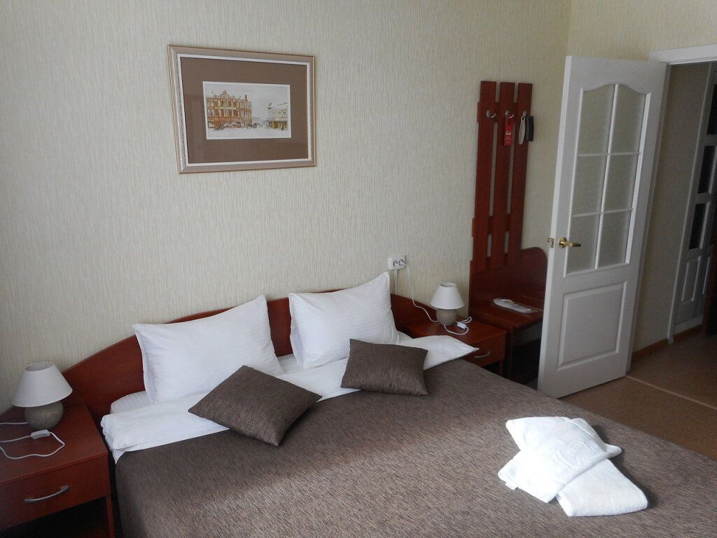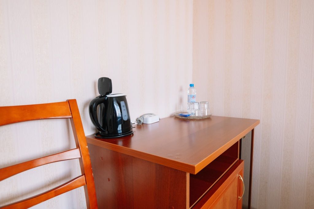 кровать двуспальная; шкаф, прикроватная тумбочка для размещения вещей и документов; стол, стул для приема пищи или работы; в ванной комнате унитаз и душ для проведения гигиенических процедур; зеркало; телевизор; мини холодильник. В таком номере с достаточным уровнем комфорта разместится один человек, путешествующий в деловых целях, или семья. Мы заинтересованы в хороших впечатлениях своих гостей и позитивных отзывах и стараемся сделать проживание в отеле более комфортным и обеспечить постояльцев необходимыми атрибутами. Например, бесплатным интернетом.Услуги и удобства