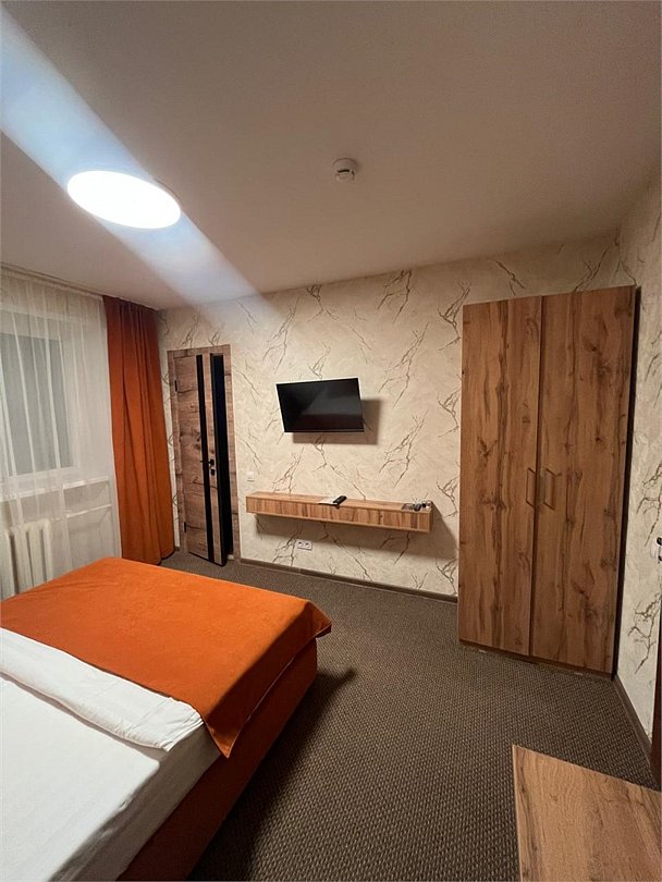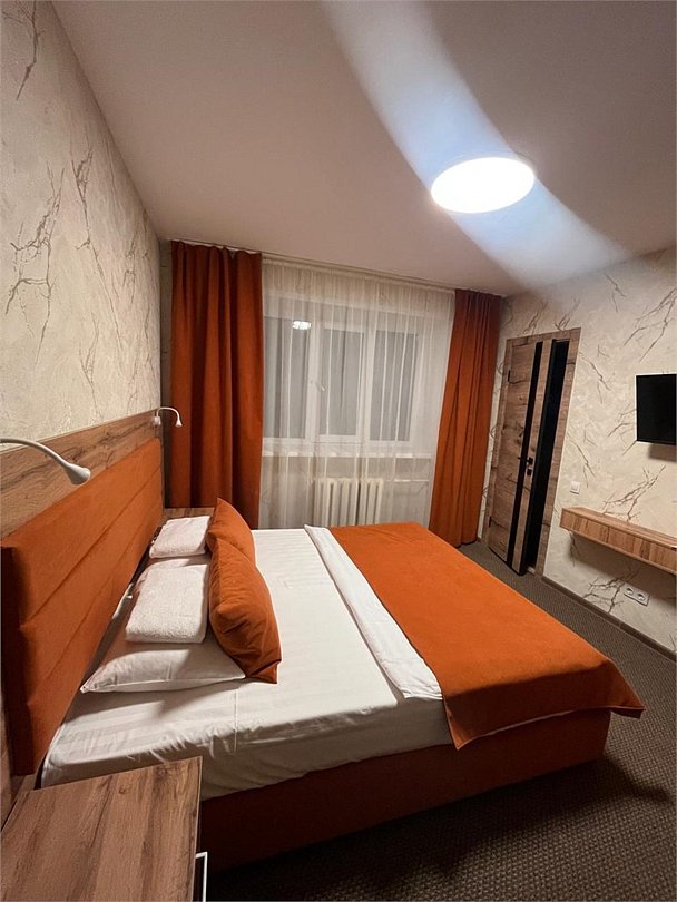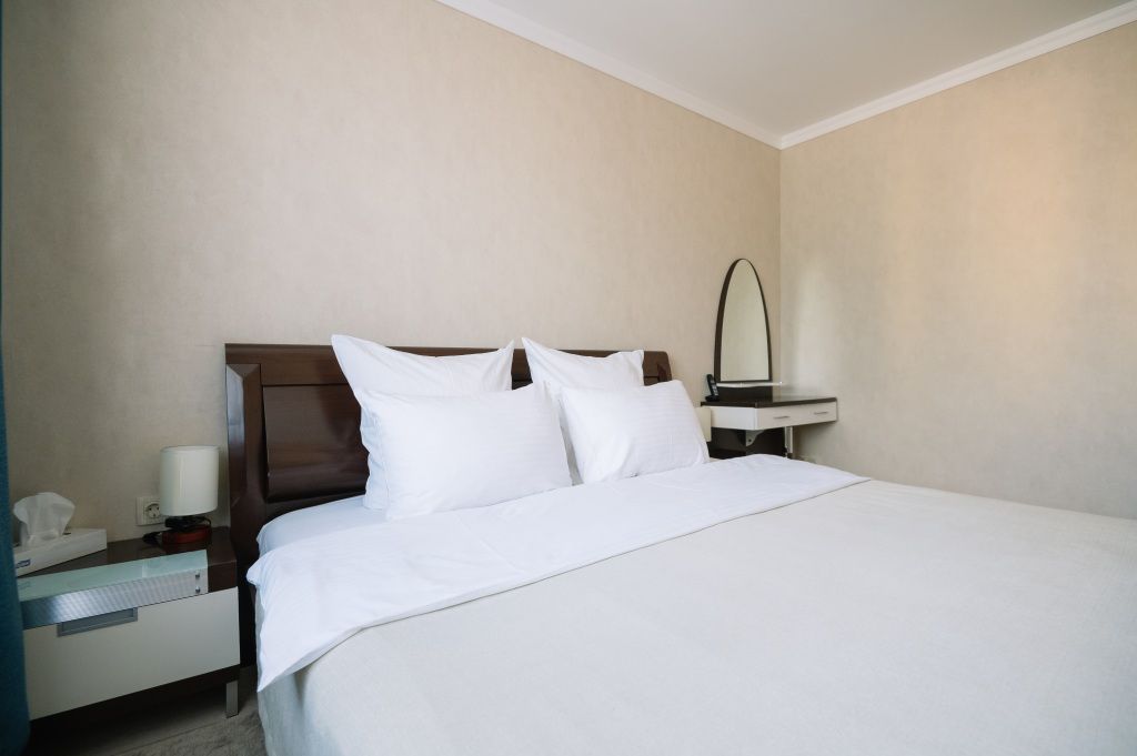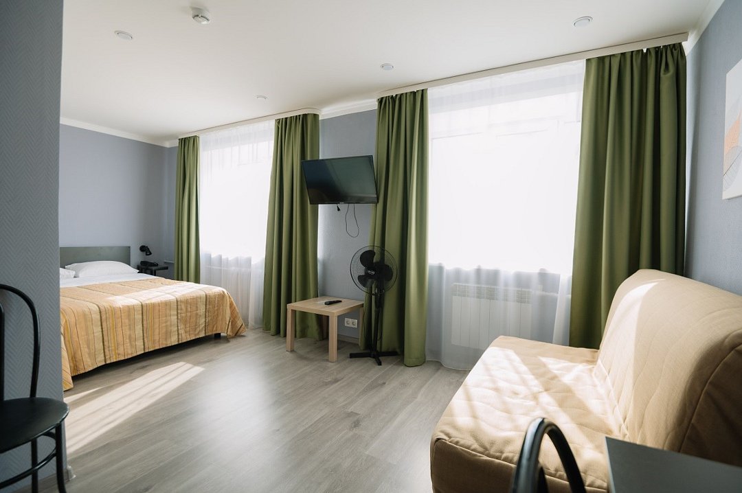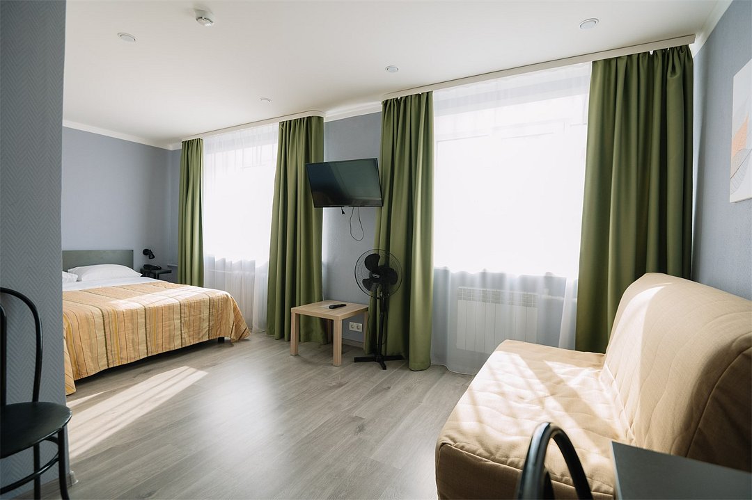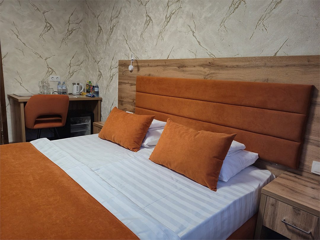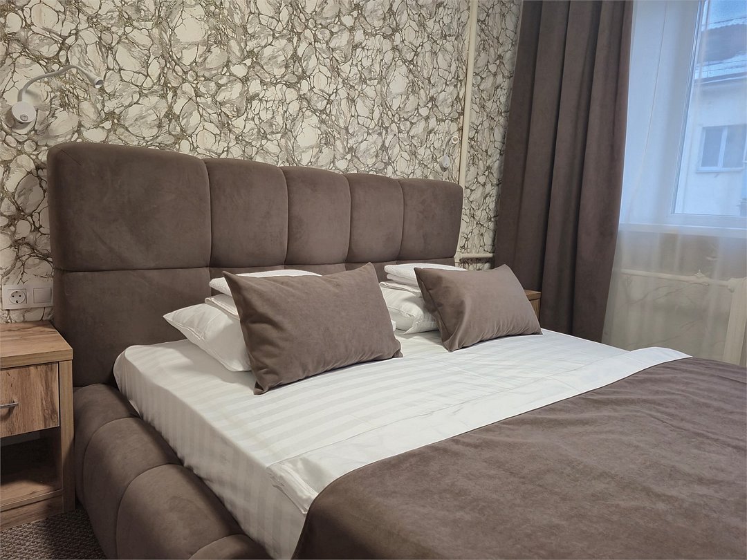 кровать двуспальная; шкаф, прикроватная тумбочка для размещения вещей и документов; стол, стул для приема пищи или работы; в ванной комнате унитаз и душ для проведения гигиенических процедур; зеркало; телевизор; мини холодильник. В таком номере с достаточным уровнем комфорта разместится один человек, путешествующий в деловых целях, или семья. Мы заинтересованы в хороших впечатлениях своих гостей и позитивных отзывах и стараемся сделать проживание в отеле более комфортным и обеспечить постояльцев необходимыми атрибутами. Например, бесплатным интернетом.Услуги и удобства