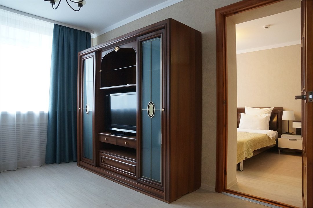 2 комнаты (спальня и гостиная), широкая кровать 180 см, раскладной диван может использоваться в качестве дополнительного спального места, бутилированная вода, фен, завтрак "шведский стол " включён. Двухместное размещение на раздельных спальных местах оплачивается дополнительно.Услуги и удобства