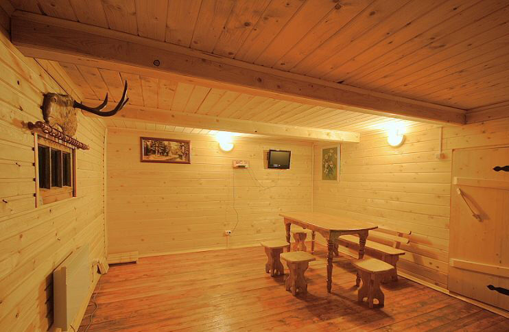 Щебетание птиц, тишина и спокойствие, речка недалеко от загородного дома... Что еще нужно для комфортного расслабляющего отдыха? Ах да, конечно же, баня. Для любителей попариться с веничком турбаза предлагает баньку с топкой на березовых дровах и комфортабельную комнату отдыха. Здесь же на территории базы отдыха имеются мангалы, чтобы Вы могли пожарить шашлык.