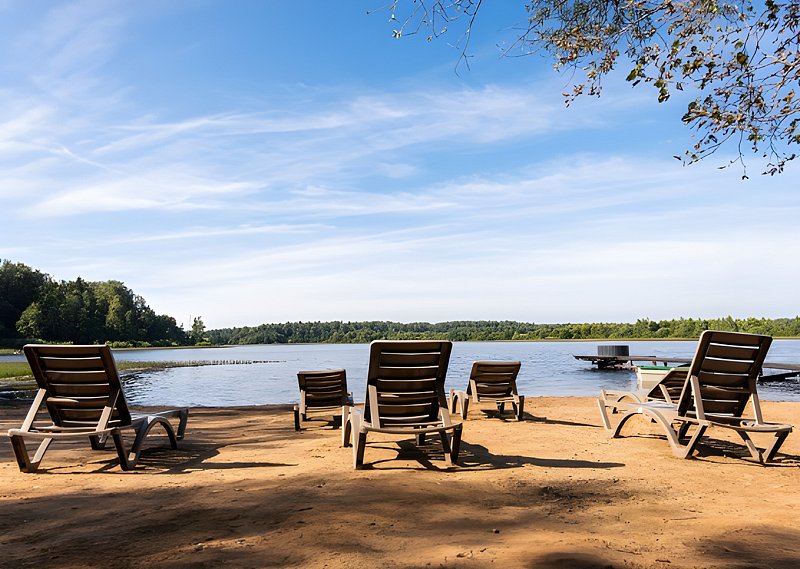 В распоряжении гостей собственный пляж с удобными лежаками и беседка с кальяном. Любителям активного отдыха доступны рыбалка, лодка и SUP-борды. Есть возможность совершить увлекательную велосипедную прогулку по живописным окрестностям.