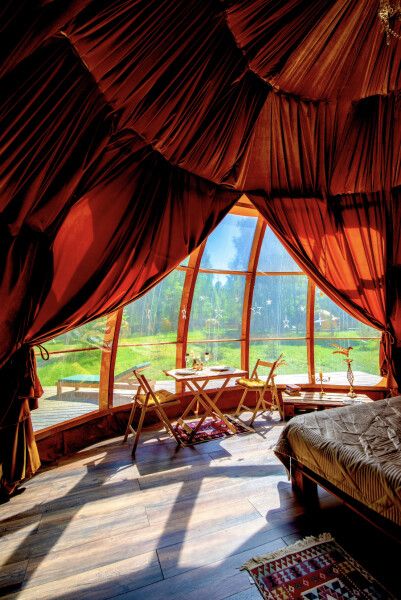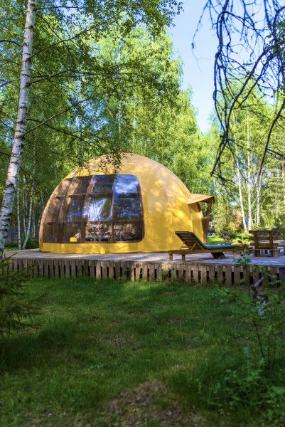Также у сферы есть второй ярус, на котором может с комфортом разместиться ребенок. А еще горячие ванны под открытым небом (не включены в стоимость проживания).