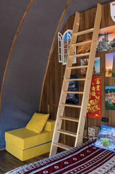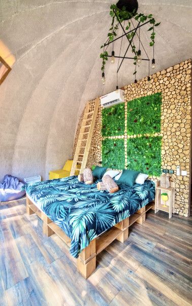 Футуристичная и уютная сфера, обшитая мягким и плюшевым мехом в светлых тонах. В сфере много зелени и цветов, чтобы даже внутри вы могли чувствовать, что вы на природе.