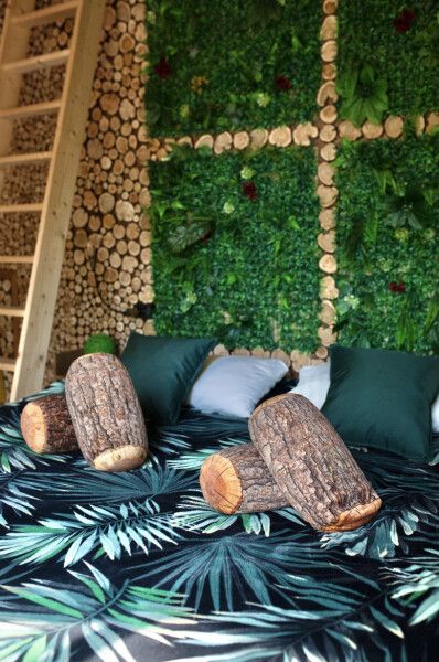 Футуристичная и уютная сфера, обшитая мягким и плюшевым мехом в светлых тонах. В сфере много зелени, а также предметов интерьера из можжевельника.