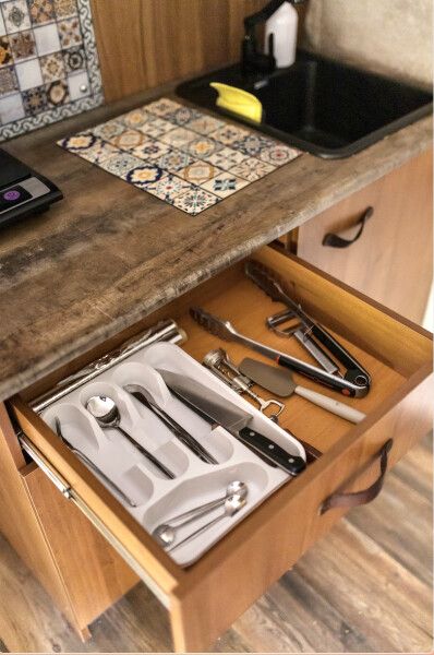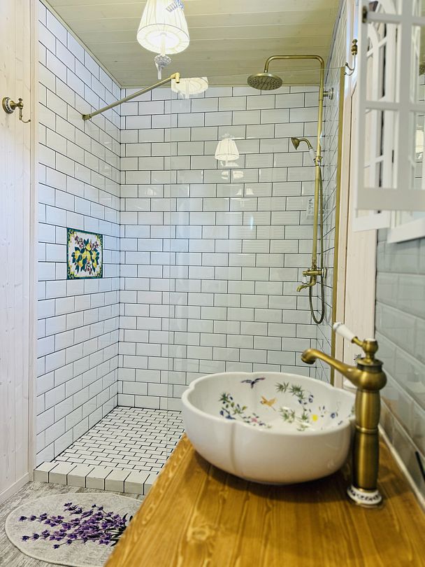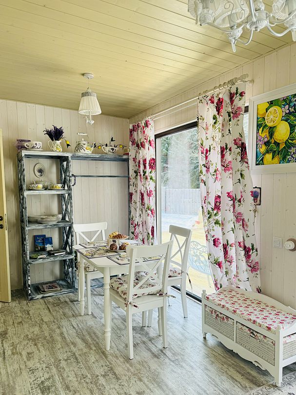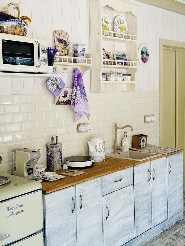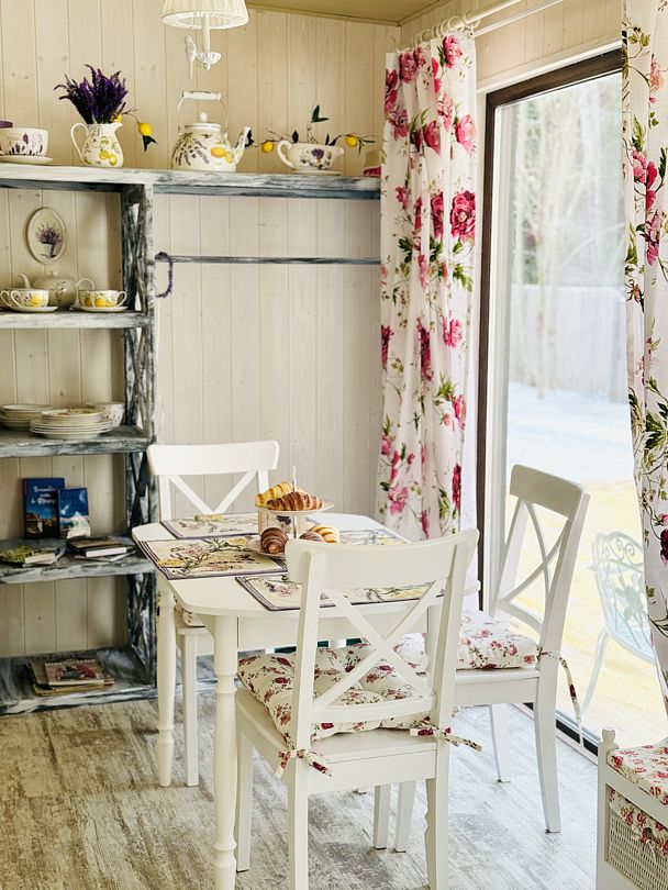 Просторный модульный дом, площадью 44 кв.м., с двумя спальнями. Дизайн интерьера которого выполнен в стиле «Прованс», светлые, пастельные тона, винтажная мебель, кованные детали декора, искусственная небрежность в деталях, лаванда, лимоны и только натуральные материалы.