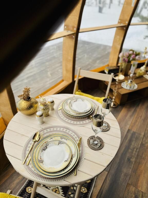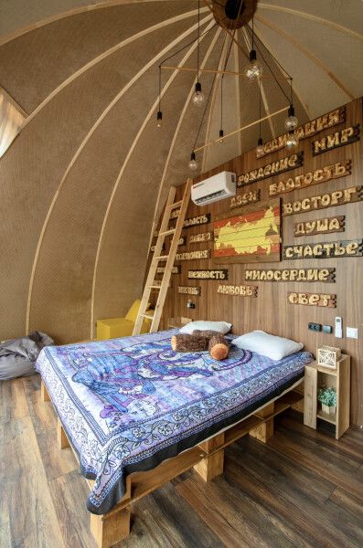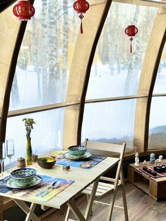В сфере есть всё необходимое для комфортного отдыха: кондиционер, санузел, душ, фен, кухня со всем необходимым оборудованием и посудой, кофемашина. В вашем распоряжении огромная личная веранда с садовой мебелью, шезлонгом и мангальной зоной. Также в этой сфере есть возможность арендовать горячий банный чан.