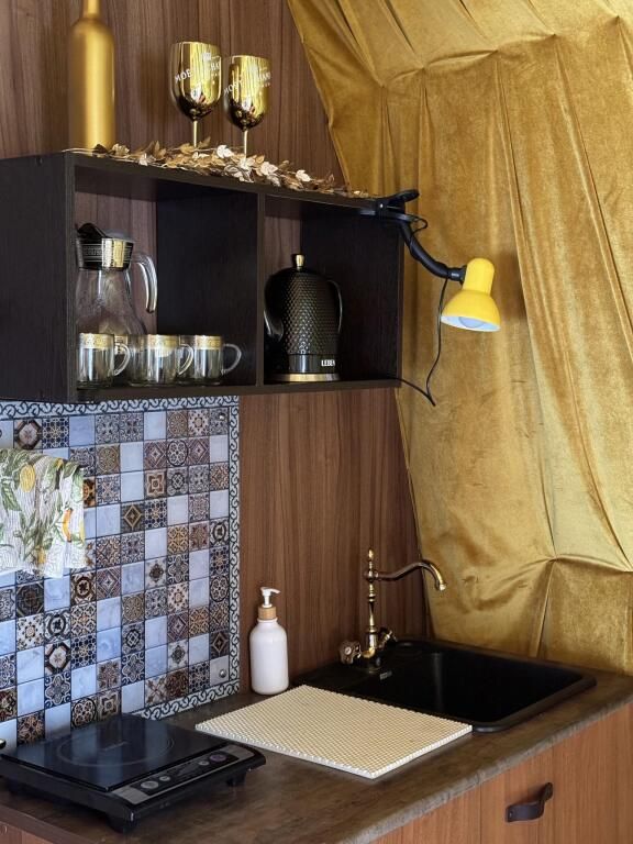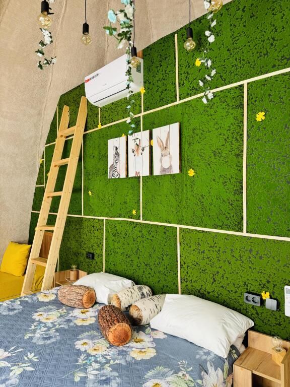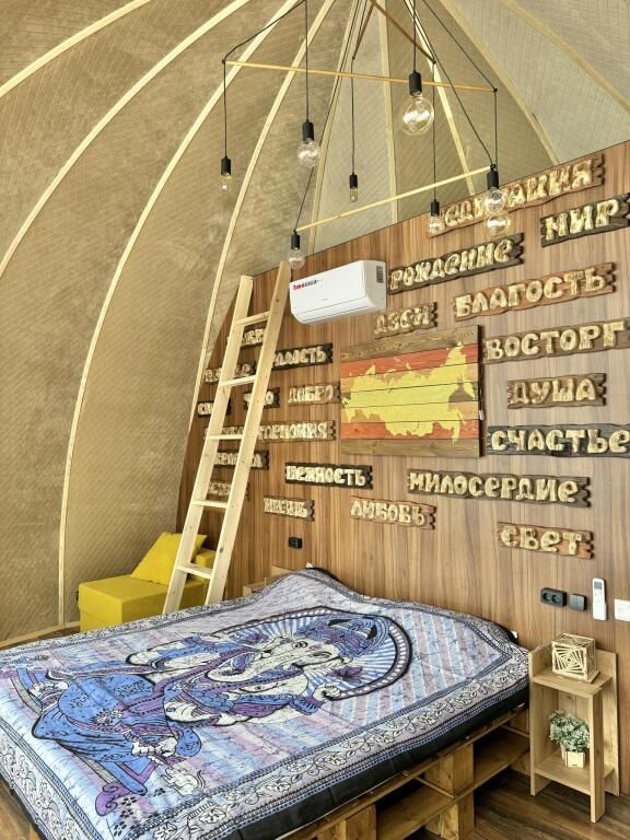 В сфере есть всё для комфортного отдыха: кондиционер, санузел, душ, фен, кухня со всем необходимым оборудованием и посудой, кофемашина. В вашем распоряжении огромная личная веранда с садовой мебелью, шезлонгом и мангальной зоной.