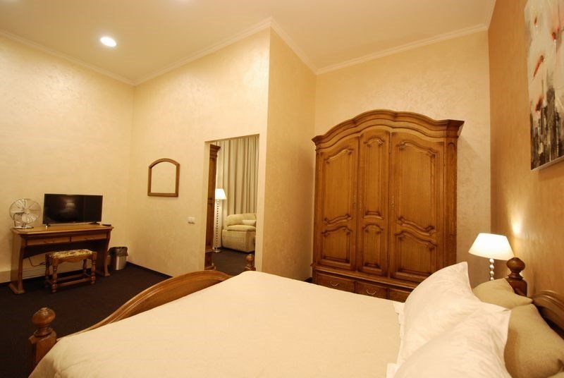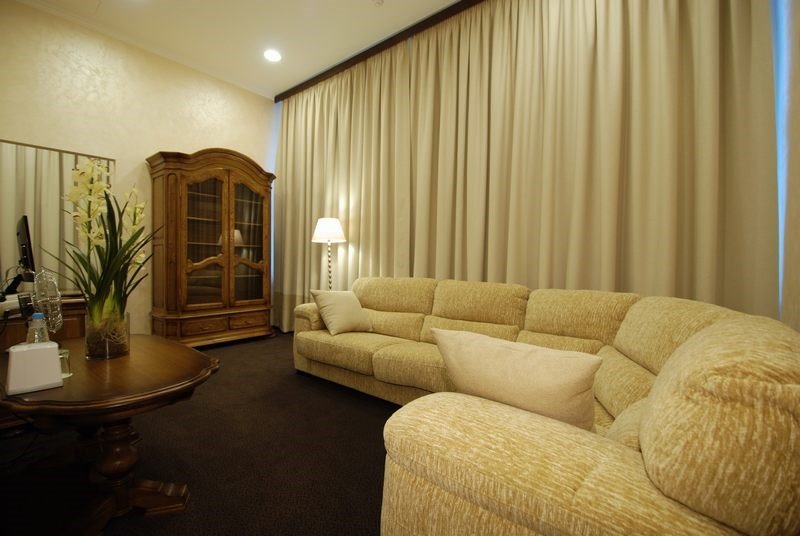 Номер состоит из двух комнат и большой прихожей и позволяет комфортно разместиться большой семье или компании Интерьер выдержан в светлых тонах с применением только высококачественных материалов. В номере установлена дубовая мебель в классическом стиле. Мы создали все условия для Вашего комфортного сна: ортопедический матрас, гипоаллергенные одеяла и подушки, высококачественное постельное белье, портьеры не пропускающие дневной свет. Ванная комната оснащена современным сантехническим оборудованием и душевой кабиной.Услуги и удобства