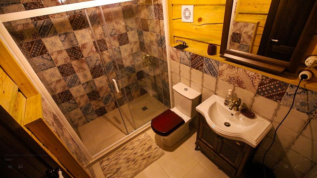Второй этаж — Комната ВАСИЛЕК (двуспальная кровать, санузел с раковиной, унитазом и ванной), большой балкон с видом на хутор и «уголком интроверта». Солнце с утра. Комната БОЯРЫШНИК (двуспальная кровать, санузел с раковиной, унитазом и ванной), большой балкон с видом на лес. Солнце после обеда.