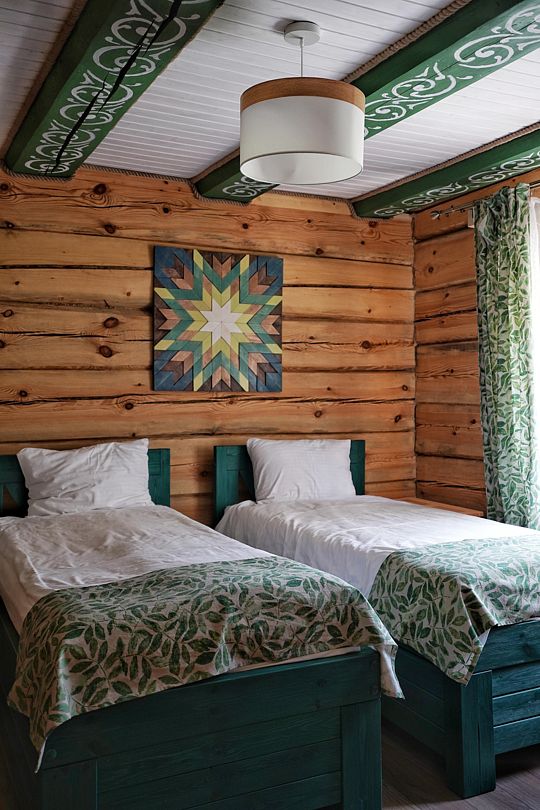 Две большие комнаты, где можно провести время в кругу друзей. Есть сеновал и массивные банные качели в каминном зале с живым огнём. Комфортное размещение на ночь для двух человек, по запросу можно добавить дополнительные спальные места.