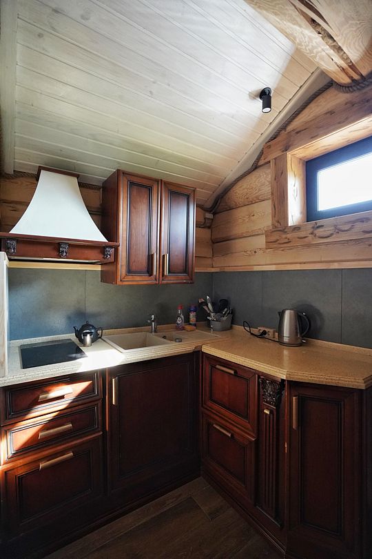 В стоимость входит аренда коттеджа целиком, мини-холодильник и кухонный уголок, также предусмотрена плита на дровах, вся необходимая посуда, чтобы чувствовать себя как дома. Уютные постельные принадлежности, полотенца, тапочки, банные шапки и халаты для вашего комфорта.