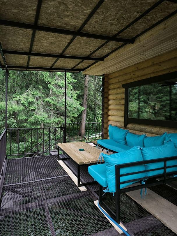 На террасе расположены банный чан и самые большие банные качели Центрального федерального округа, что позволяет наслаждаться отдыхом на свежем воздухе. Удобства включают две душевые, санузел, обливное ведро и комнату отдыха, обеспечивая комфортное пребывание для гостей.