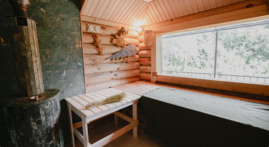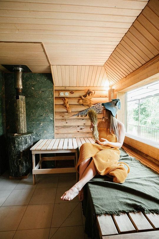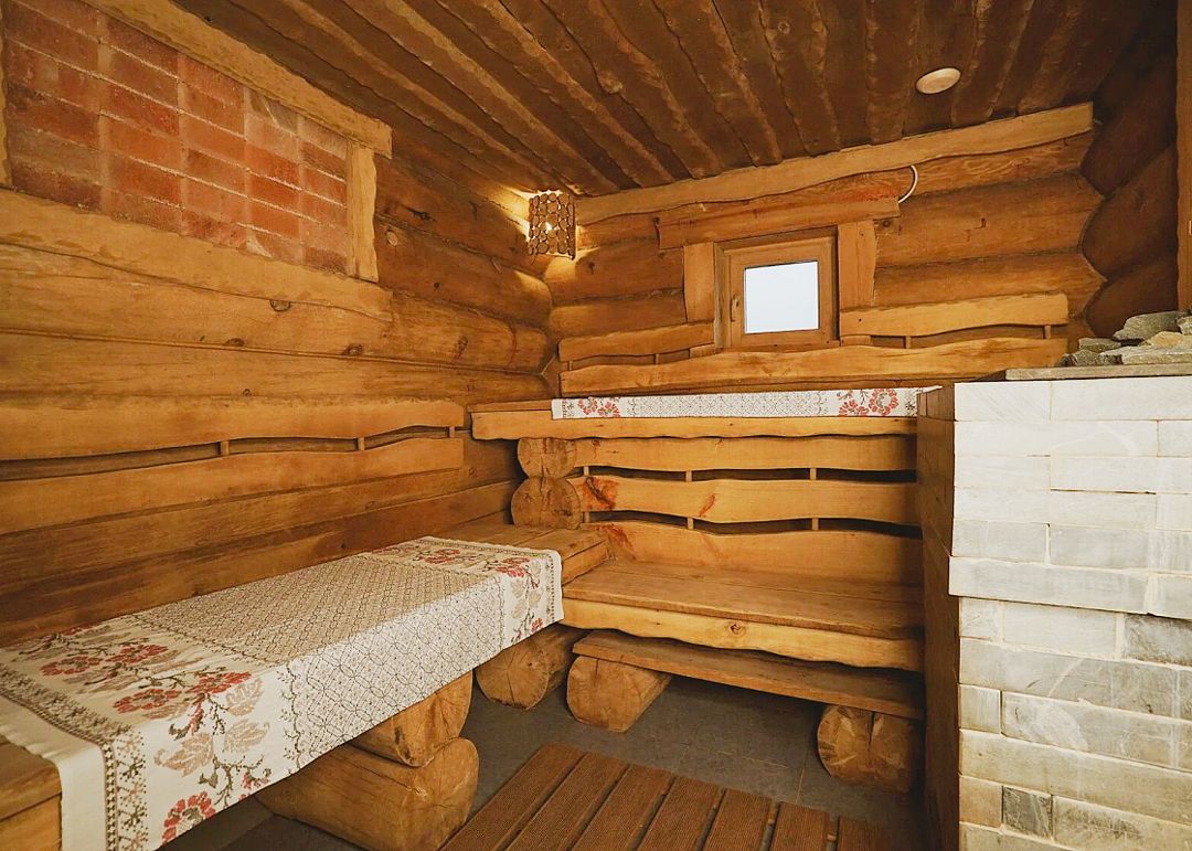 Неограниченный доступ к бане, где можно расслабиться и оздоровиться. В стоимость входит три часа затопки бани, однако банный чан — за дополнительную плату.