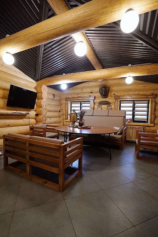 Уютный коттедж со всеми удобствами в охотничьем стиле рассчитан на комфортное круглосуточное размещение десяти человек (с дополнительными местами до пятнадцати человек), для торжества — до тридцати человек.