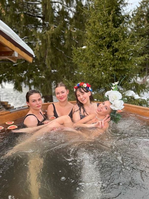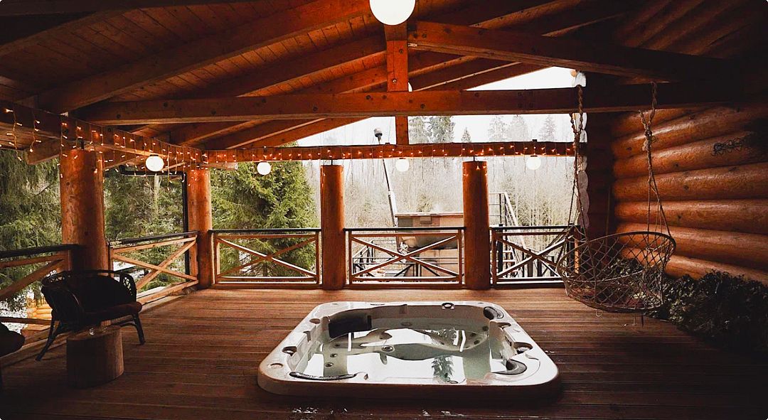 На территории «Царской» бани гостей ждет просторный горячий чан с гидромассажем и атмосферной подсветкой. Здесь можно насладиться парением как в традиционном стиле, так и уникальным наполнением с ароматами пихты и цитруса, создавая атмосферу для незабываемого отдыха.
