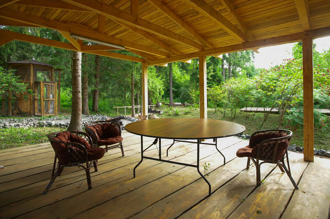Шикарный вид на пруд и лес с веранды, идеальное место для утреннего кофе или вечерних посиделок.⠀ Прямой спуск в озеро для купания и рыбалки.