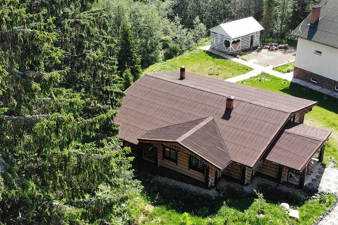 Просторный коттедж с баней площадью 200 м² построен из архангельской сосны большого диаметра. Невероятная веранда с джакузи в окружении вековых елей! Отделка сделана с большим вкусом и любовью, что дарит уникальное состояние гармонии и красоты и даже ощущение сказки. Этому способствуют многочисленные детали и волшебные артефакты.