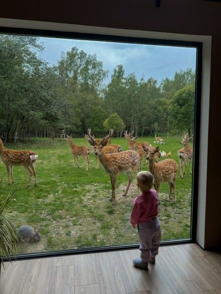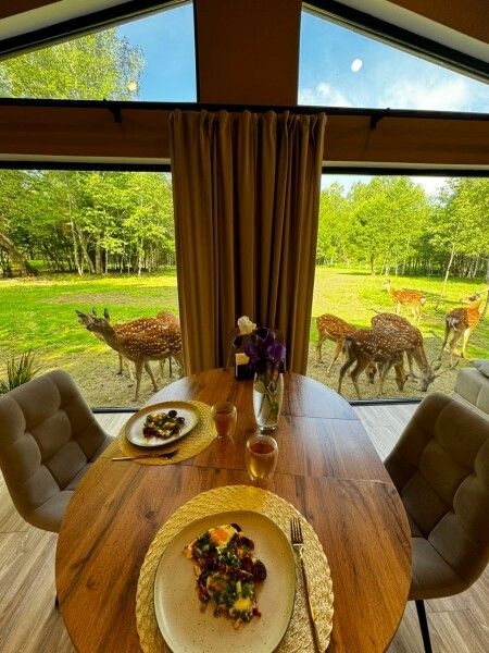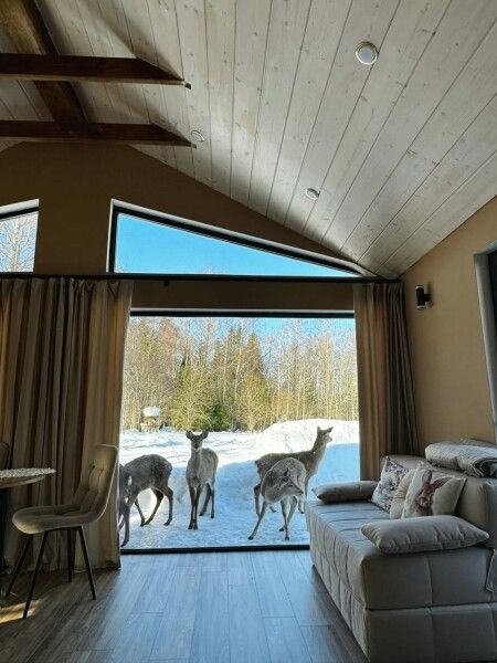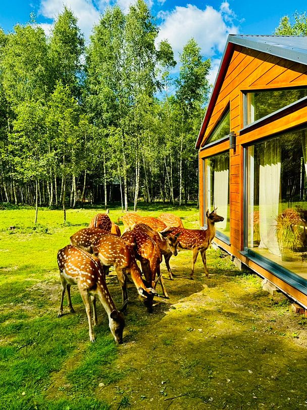 Тишина, спокойствие, уединение и пятнистые олени перед вашими панорамными окнами. Их можно покормить прямо с веранды.