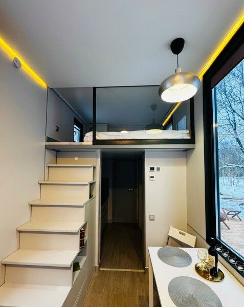 Современный ухоженный дом 36 кв. м в собственном лесу с пятнистыми оленями.