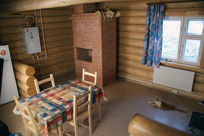 В прекрасно оборудованных домиках, рассчитанных на проживание 4-х человек, приятно находиться и зимой, и летом. В каждой гостиной расположен камин, согревающий в стужу или летним прохладным вечером.