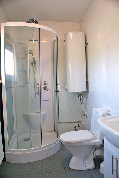 - 1-й этаж: гостиная (обеденный стол, диван, туалет, душевая кабина);
