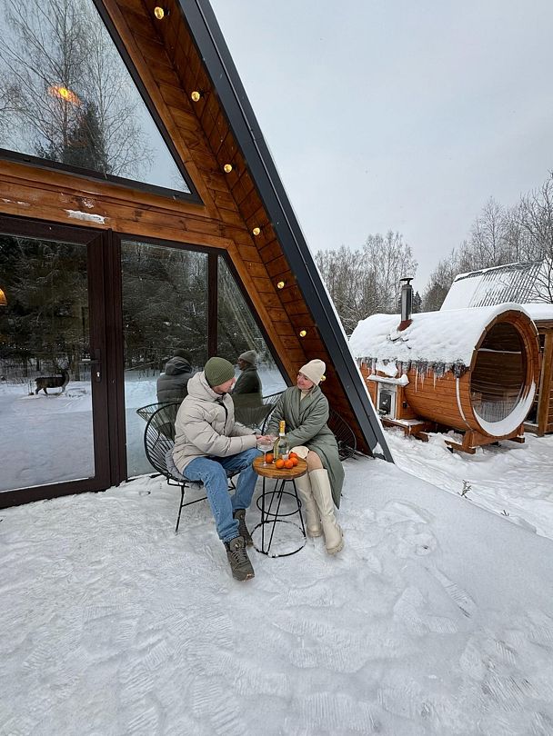 Заезд с 16:00, выезд до 13:00. Баня-бочка и подогреваемая купель доступны за дополнительную плату.