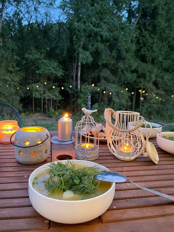 В «Vlesu» природа объятиями оборачивает комфорт – наслаждайтесь хромотерапией в купели, расслабляя мышцы и укрепляя здоровье. Здесь каждое утро встречается с незабвенными рассветами, а вечер – с чудесными закатами, создавая идеальные мгновения для воспоминаний, запечатленных в ярких фотографиях. Отдохните в подвесном кресле-коконе с книгой в руках или проведите время за настольными играми с близкими — глэмпинг «Vlesu» предлагает уют, спокойствие и гармонию с природой.
