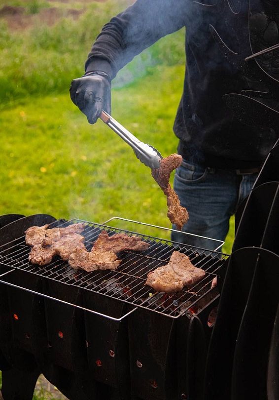 Гости могут насладиться искусством приготовления изысканных блюд на мангале, оснащенном решеткой и шампурами. Уголь и розжиг можно привезти с собой или приобрести на месте.