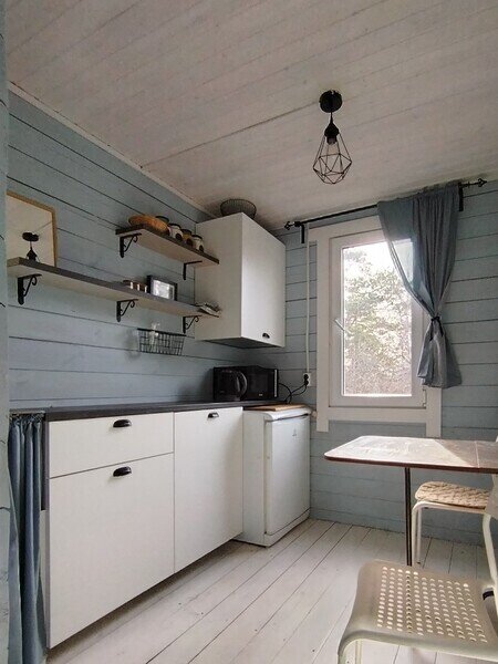 В доме есть холодильник, микроволновка, электроплита, раковина, необходимая мебель, посуда, чистое белье, книги и настольные игры.