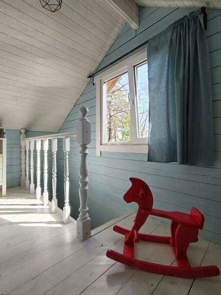 Двухэтажный дом с просторной верандой и панорамным окном, 50 м, расположенный на краю соснового леса. Комфортно разместятся до 4 взрослых. Баня входит в стоимость аренды.
